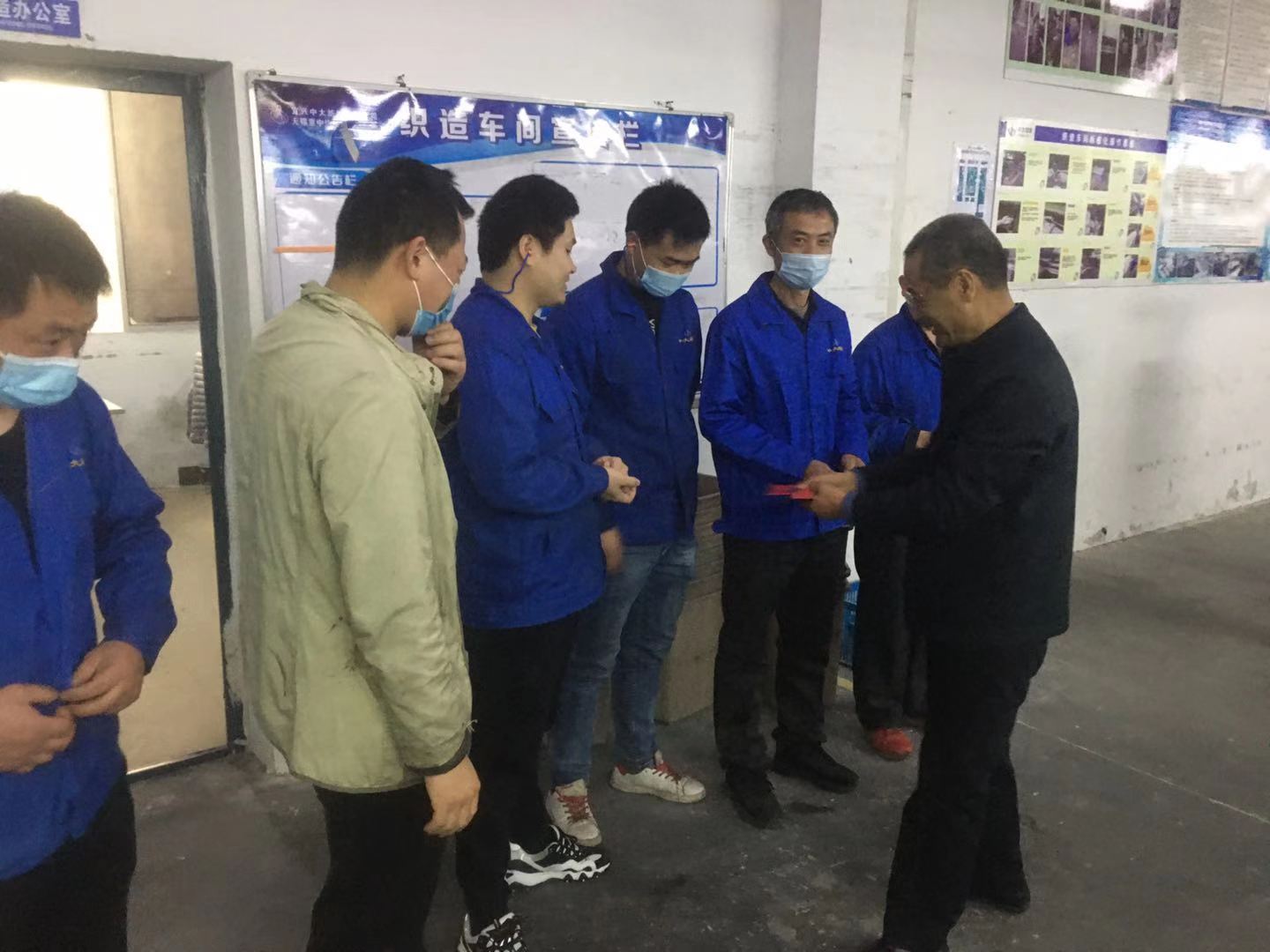 21日,节后开工第一天,上午8:18分,蒋总、闫莉、陈光明、王瑞楠等公司高层领导,走进生产一线,给全体员工派发新年红包,送去新年祝福。